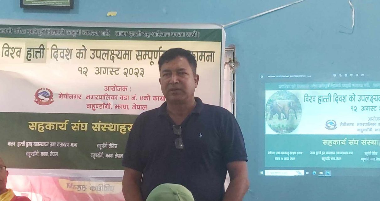 मेचीनगर । मेचीनगर-४ वडा कार्यालयमा विश्व हात्ती दिवसका अवसरमा हात्तीको आनीबानी, महत्त्व र सहअस्तित्व सम्बन्धी कार्यक्रम सम्पन्न भएको छ । वडा कार्यालयलको आयोजनामा कार्यक्रममा कोशी प्रदेश सभा सदस्य गोपाल तामाङको प्रमुख आतिथ्यता रहेको थियो ।