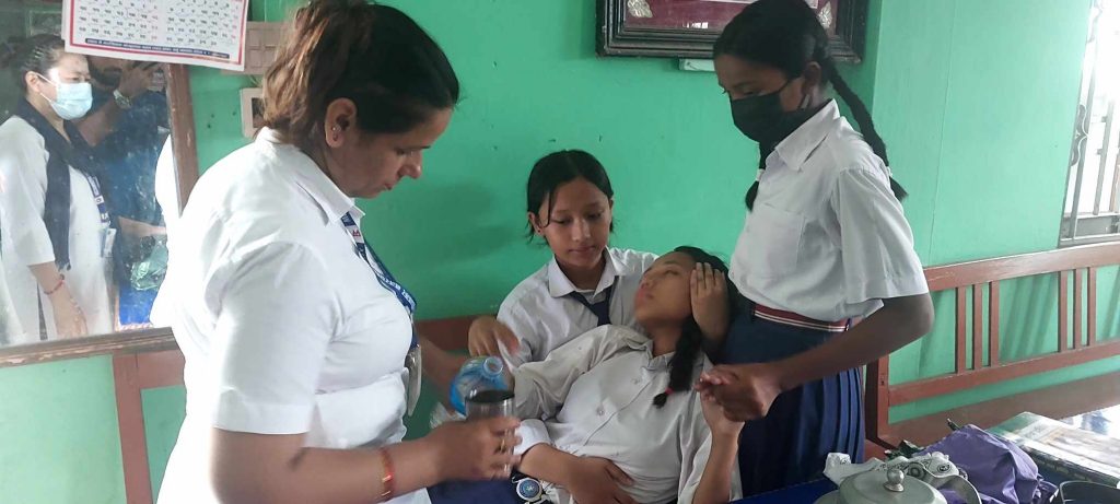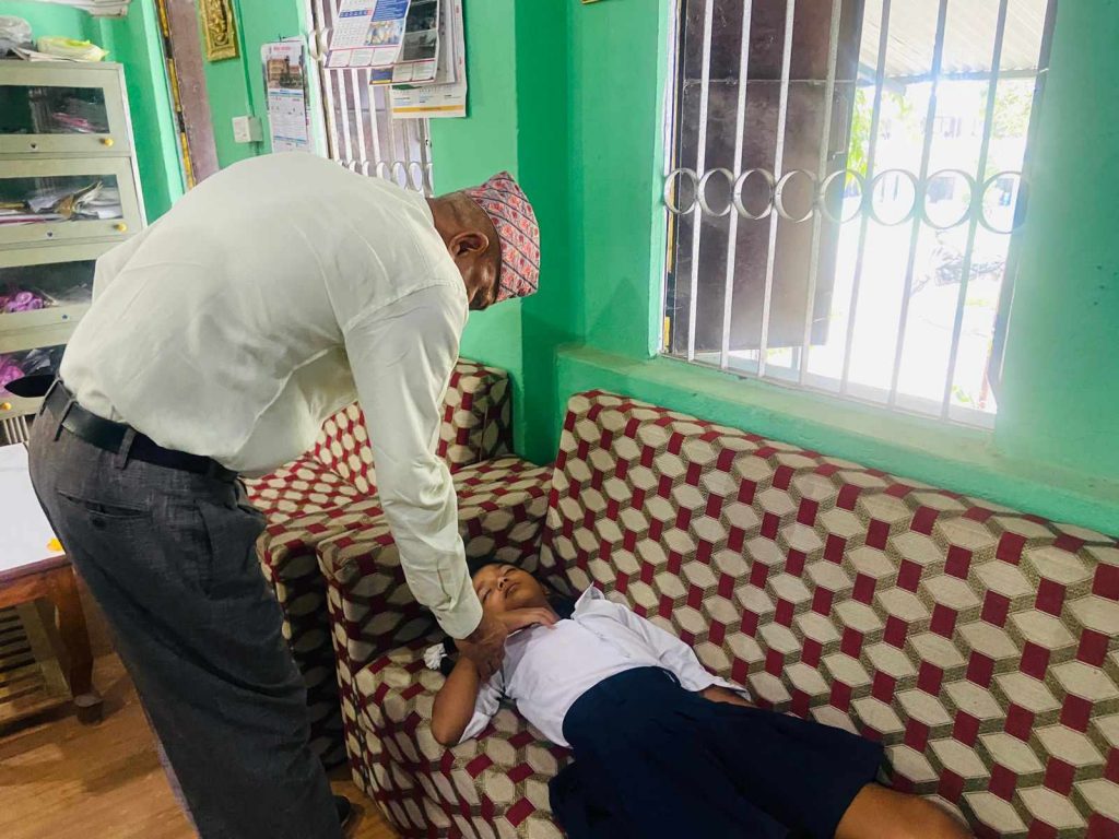 मेचीनगर । मेचीनगर-६ स्थित काँकरभिट्टा माविमा अध्ययरत विद्यार्थी बेहोस हुन थालेपछि नगरप्रमुख गोपालचन्द्र बुढाथोकी स्वास्थ्यकर्मी सहितको टोलि लिएर विद्यालय पुगेका छन् ।