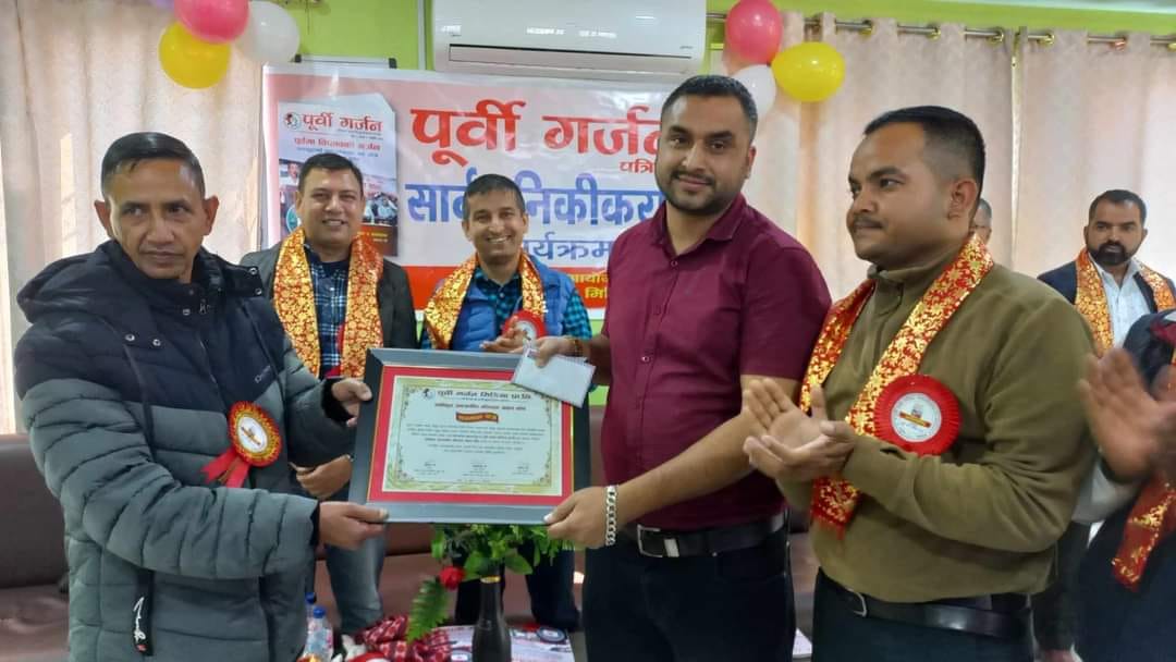 पूर्वी गर्जन मिडिया प्रालिद्वारा पत्रकार ढकाल पुरस्कृत