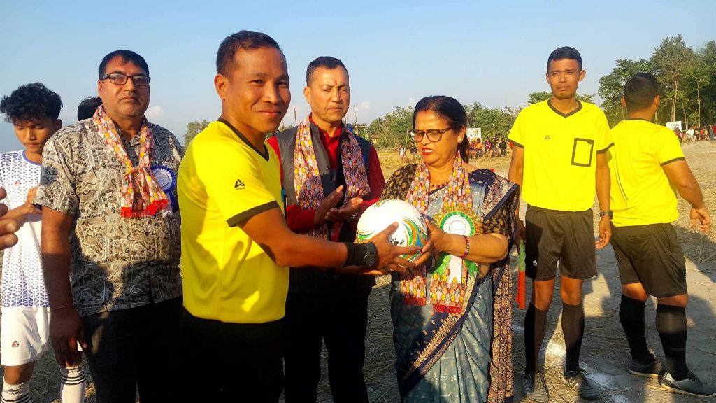 मेचीनगर । मेचीनगर ७ मा आजबाट प्रथम जोरसिमल कप २०८०’ फुटबल प्रतियोगिता सुरु भएको छ । पुस ९ गतेदेखि १६ गतेसम्म सञ्चालन हुने प्रतियोगिताको उद्घाटन मेचीनगर उपप्रमुख मीना पोख्रेल उप्रेतीले गरेकी थिइन् । प्रतियोगिताको उद्घाटन गर्दै कार्यक्रमकी प्रमुख अतिथि उप्रेतीले खेलकुदले मानिसलाई अनुशासीत र स्वास्थ्य रहन मदत पुर्याउने बताइन् ।