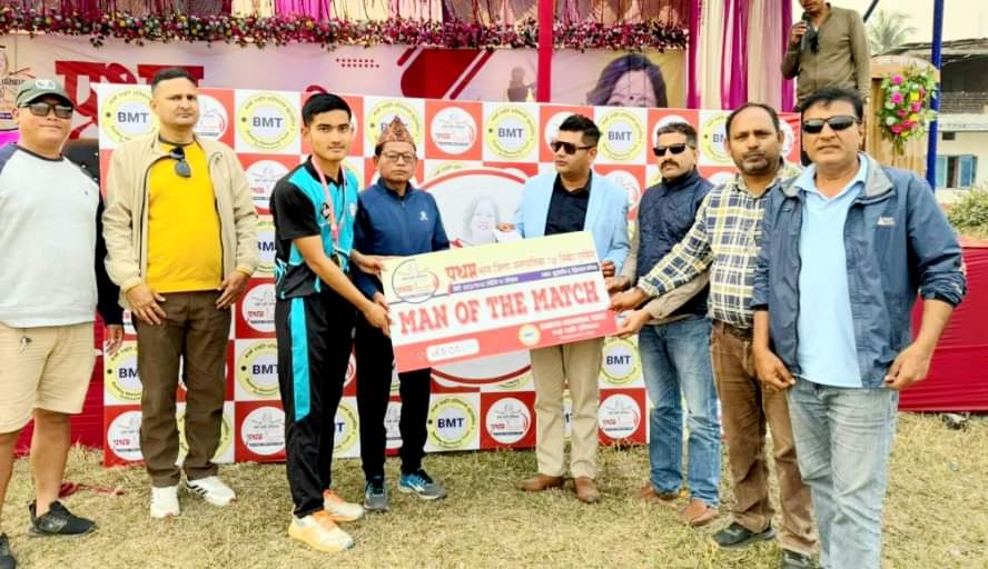 अलराउण्ड प्रदर्शनी गर्दै व्याटिङमा ३२ रन र वलिङमा ३ विकेट लिएका मेचीनगरका आशिक राना मगर म्यान अफ दि म्याच घोषित भए ।