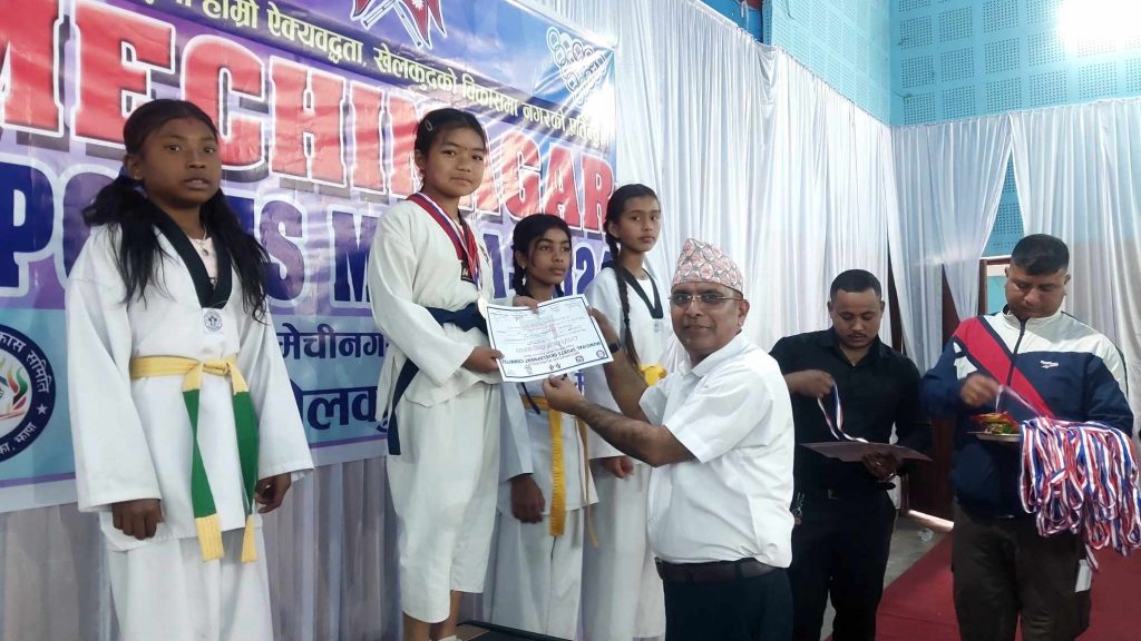 तेक्वान्दोतर्फ मेचीनगर वडा नम्बर १४ ले प्रथम स्थान हासिल गरेको छ । प्रतियोगितामा ५ स्वर्ण ५ रजत र १९ कास्य गरी २९ पदकसहित मेचीनगर १४ प्रथम भएको हो ।