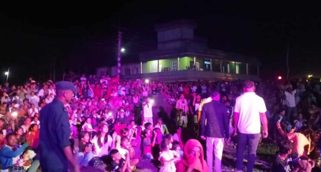 मेचीनगर । प्रतिभा टोल विकास संस्थाको आयोजनामा बृहत साँस्कृतिक कार्यक्रम शनिबार सम्पन्न भएको छ। नयाँ वर्ष २०८१ सालको अवसरमा शनिबार मेचीनगर-८ स्थित मक्करचोकमा साँझ राष्ट्रिय ख्यतिप्राप्त कलाकार श्रीकृष्ण लुइँटेल ‘बोकेदाह्री’ले दर्शकलाई झुमाएका थिए । श्रीकृष्ण लुइँटेलले बाँके बर्दिया, मुखमा हान्नु जस्तो, ए बा किन्देऊन भट्भटे, तेरो बाउ थोतेलगायत दर्जनौँ गीत गाएका थिए ।