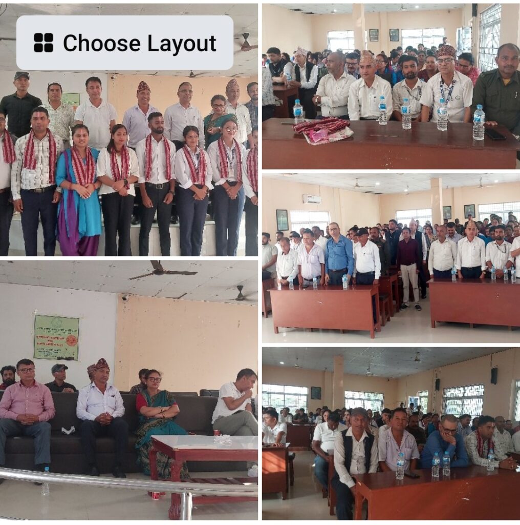 कार्यक्रममा एशाेसिएसनका संघीय, प्रदेशका प्रतिनिधि , नगरपालिकाका विभिन्न शाखाका प्रमुख, नगर प्रहरी प्रमुखलगायत अधिकाँश कर्मचारीहरूकाे सहभागिता रहेकाे थियाे । कार्यक्रममा सहभागी सवैलाई एशाेसिएसनका इकाई उपाध्यक्ष भवानी सिटाैलाले शब्दमार्फत स्वागत गरेका थिए ।