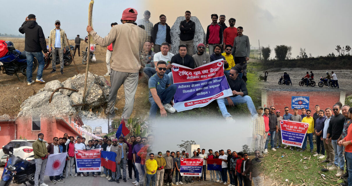 राष्ट्रिय युवा संघ नेपाल कोशी प्रदेश कमिटी सदस्य रविनशन थापामगरको प्रमुख आतिथ्यमा सञ्चालन भएको अभियान मेचीनगर १ देखि सिमा जोडिएको वडा नम्बर १५ सम्म नै सिमा स्तम्भहरू अनुगमन गरेको थियो ।