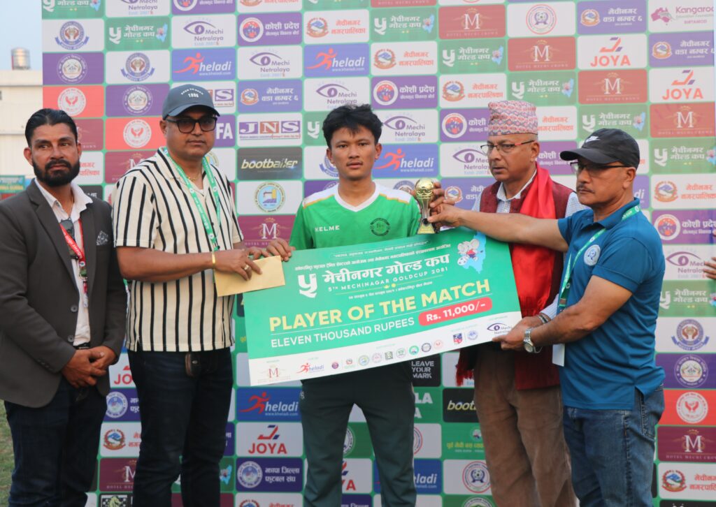 खेलको प्लेयर अफ द म्याच धरानका बैकल्पिक गोलरक्षक बिपुल मगर घोषित भए । उनले नगद ११ हजार रुपैयाँ प्राप्त गरे । मंगलवारको खेल विभागीय टिम सशस्त्र प्रहरीको एपीएफ एफसी र मछिन्द्र फुटबल क्लबबिच हुने आयोजक क्लबका अध्यक्ष नवराज ओलीले बताए ।
