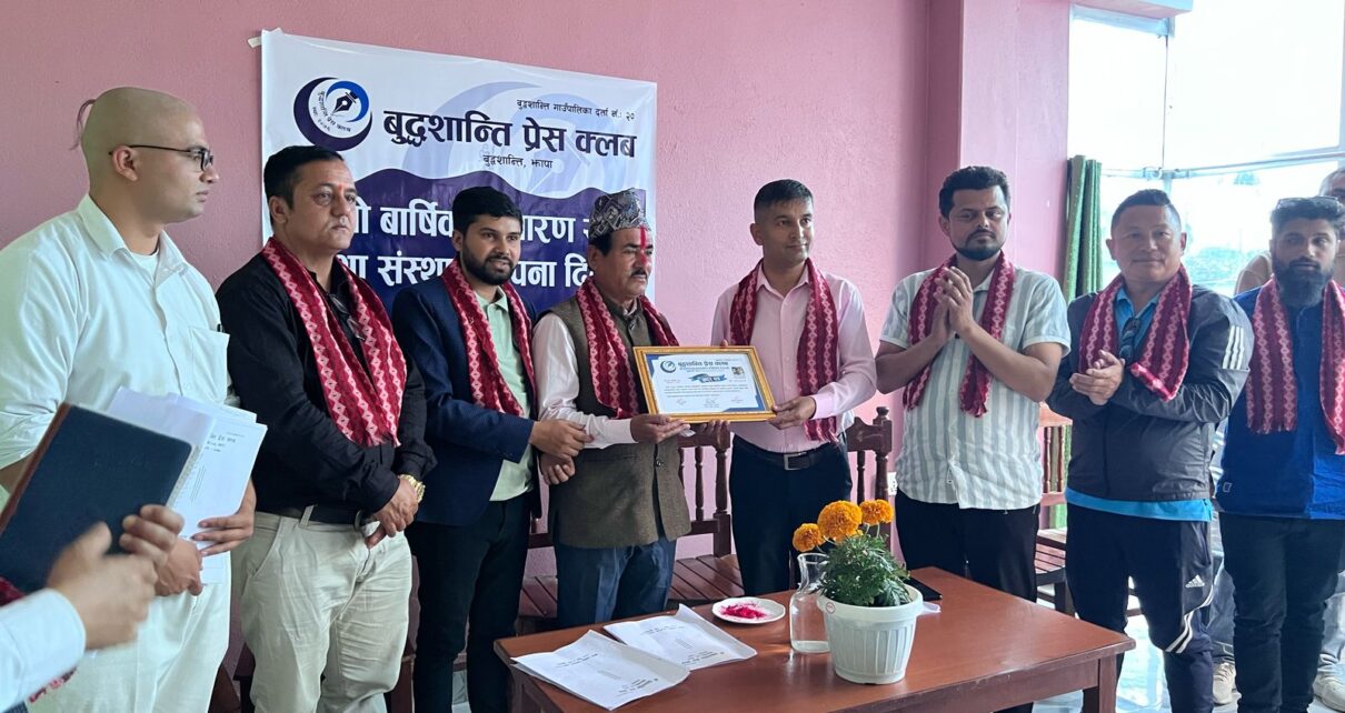 बुद्धशान्ति । बुद्धशान्तिका पत्रकारहरुको छाता संगठनका रुपमा रहेको बुद्धशान्ति प्रेस क्लब बुद्धशान्ति झापाले आफ्नो चौथो वार्षिक साधारण सभा एवम् स्थापना दिवस भव्य रुपमा मनाएको छ । प्रेस क्लबका अध्यक्ष तीर्थराज तिम्सिनाको सभापतित्व तथा नेपाल पत्रकार महासंघ झापा शाखा अध्यक्ष एकराज गिरीको प्रमुख आतिथ्यतामा साधारण सभा एवम् स्थापना दिवस मनाइएको हो ।