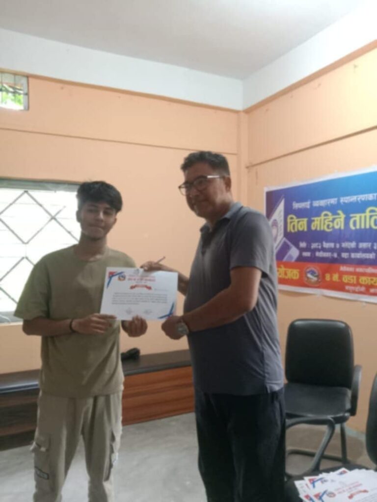 समापन समारोहमा सहभागीहरुलाई वडाध्यक्ष अर्जुन कुमार कार्की तथा जनप्रतिनिधिहरूले प्रमाणपत्र वितरण गरेका थिए। कार्यक्रममा वडाध्यक्ष कार्कीले आजको युगमा प्रविधिको महत्वबारे प्रकाश पार्दै तालिमले युवालाई सशक्त बनाउन सहयोग पुर्याउने विश्वास व्यक्त गरे।