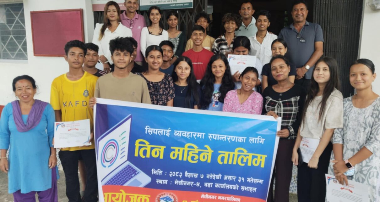 मेचीनगर । मेचीनगर नगरपालिका वडा नम्बर ४ ले सञ्चालन गरेको तीन महिने आधारभूत कम्प्युटर तालिम सम्पन्न भएको छ। गत वैशाख ७ गतेदेखि सुरु भएको तालिम असार ३१ गते सम्पन्न भएको हो।