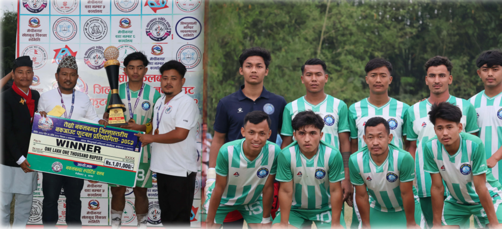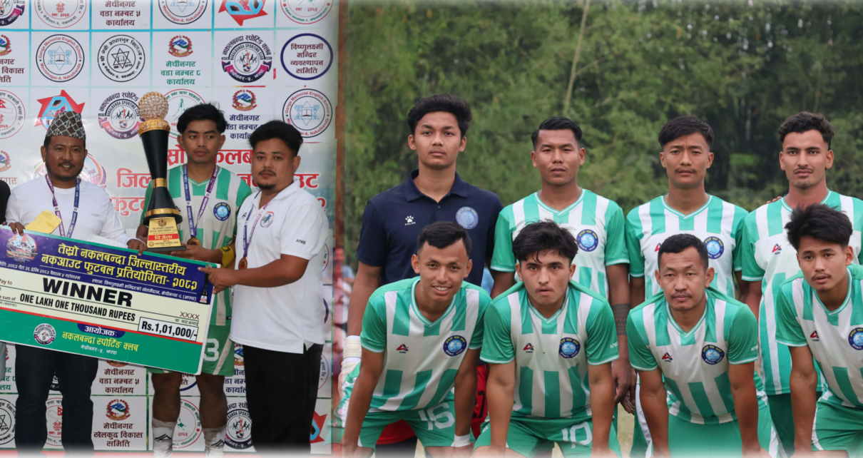 मेचीनगर । मेचीनगर–८ स्थित विष्णुलक्ष्मी मन्दिरको खेलमैदानमा सम्पन्न तेस्रो जिल्ला स्तरीय नकलबन्दा नकआउट फुटबल प्रतियोगिता–२०८२ को उपाधि आदर्श युवा क्लब बुधबारेले जितेको छ। शनिबार भएको रोमाञ्चक फाइनलमा आयोजक नकलबन्दा स्पोर्टिङ क्लबलाई ३–० गोलअन्तरले पराजित गर्दै आदर्शले ट्रफी उचालेको हो । जीतसंगै आदर्शले नगद एक लाख १ हजारसहित च्याम्पियन ट्रफी हता पार्दा आयोजकले ५५ हजारमा चित्त बुझायो ।